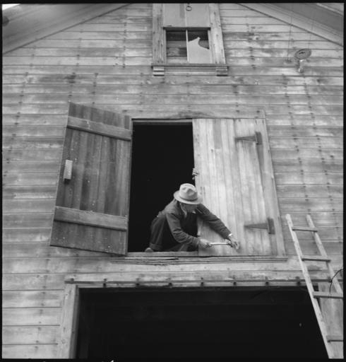 | Keywords: Centerville, California. Nailing the hayloft door on the morning of evacuation. Farmers and other . . . - NARA - 537563.jpg Scope and content The full caption for this photograph reads Centerville California Nailing the hayloft door on the morning of evacuation Farmers and other evacuees of Japanese ancestry will be given opportunities to follow their callings at War Relocation Authority centers where they will spend the duration General notes 537563 Local identifier 210-G-C216 Department of the Interior War Relocation Authority 02/16/1944 - 06/30/1946 NARA-Author Lange Dorothea 1895-1965 Photographer 1372774 <br /> Still Picture Records Section Special Media Archives Services Division NWCS-S National Archives at College Park 8601 Adelphi Road College Park MD 20740-6001 1942-05-09 Record group Record Group 210 Records of the War Relocation Authority 1941 - 1989 Record group ARC 537 Central Photographic File of the War Relocation Authority compiled 1942 - 1945 Series ARC 536000 File unit File unit ARC Variant control numbers NAIL Control Number NWDNS-210-G-C216 Other versions <gallery> File Centerville _California _Nailing_the_hayloft_door_on_the_morning_of_evacuation _Farmers_and_other_ _ _ _-_NARA_-_537563 tif tif File Centerville _California _Nailing_the_hayloft_door_on_the_morning_of_evacuation _Farmers_and_other_ _ _ _-_NARA_-_537563 jpg jpg </gallery> NARA-cooperation PD-USGov Japanese American internment processing in Centerville Alameda County California Men at work in California Barns in California Hay lofts Doors in California Dorothea Lange Barn doors |