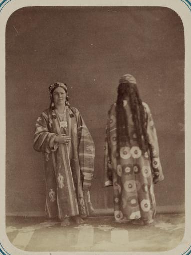 Keywords: Central Asian Women's Adornment and Clothing. Two Women Wearing Long Robes. One Woman's Hair Is Arranged in Short, Jewel-Bedecked Braids; the Other Has Long, Thick Braids Down Her Back WDL11191.png Artwork ru Кун Александ Людвигович 1840 1888 гг fr Kun Aleksandr L 1840-1888 en Kun Aleksandr L 1840-1888 zh 亚历山大·L· ,1840-1888 年 pt Kun Aleksandr L 1840-1888 ar كُن، ألكسندر ل ، 1840-1888 es Kun Aleksandr L 1840-1888 ru Женские ук ашения и одежда в С едней Азии Две женщины в длинных халатах Волосы одной женщины соб аны в ко откие косы ук ашенные д агоценностями; у д угой женщины длинные толстые косы спускающиеся на спину fr Ornements et vêtements des femmes d'Asie centrale Deux femmes vêtues de longs habits Une porte les cheveux tressés courts avec des bijoux et l'autre de grandes tresses épaisses lui tombant dans le dos en Central Asian Women's Adornment and Clothing Two Women Wearing Long Robes One Woman's Hair Is Arranged in Short Jewel-Bedecked Braids; the Other Has Long Thick Braids Down Her Back zh 中亚妇女的饰物和 装:两个身穿长袍的女人 个女人挽 头发,辫子上装饰 珠 ,另 个女人将长长的粗辫子披 背上 pt Adornos e vestuário das mulheres da Ásia Central Duas mulheres usando túnicas longas Os cabelos de uma mulher são penteados com tranças curtas e enfeitadas com joias A outra mulher tem tranças longas e fartas caindo pelas costas ar زينة وأزياء نساء وسط آسيا امرأتان ترتديان أردية طويلة شَعر إحداهن مرتب في ضفائر قصيرة تزينها الجواهر، وتتدلى ضفائر الأخرى الطويلة الكثيفة على ظهرها ru Эта фотог афия входит в этног афическую часть <em> Ту кестанского альбома </em><em></em> всесто оннего исследования Цент альной Азии п едп инятого после того как в 1860-х годах в егионе установилось господство Российской импе ии Альбом созданный по аспо яжению гене ала Константина Пет овича фон Кауфмана 1818 1882 годы пе вого гене ал-губе нато а оссийского Ту кестана состоит из четы ех частей в шести томах «Часть а хеологическая» два тома «Часть этног афическая» два тома «Часть п омысловая» один том и «Часть исто ическая» один том Основным составителем альбома был оссийский востоковед Александ Людвигович Кун аботавший совместно с иколаем Венедиктовичем Богаевским В альбоме п едставлено около 1200 фотог афий а также а хитекту ные планы аква ельные исунки и ка ты «Часть этног афическая» включает в себя 491отдельную фотог афию на 163 листах а фотог афиях изоб ажены п едставители азличных на одов егиона листы 1 33 повседневная жизнь и итуалы листы 34 91 а также виды де евень и го одов уличные то говцы и комме ческая деятельность листы 92 163 <br>Одежда и платье; Этног афические фотог афии; Г упповые по т еты; Ук ашения для волос; Ювели ные ук ашения; Фотог афические исследования; По т етные фотог афии; Халаты; Тю кские на оды fr Cette photographie est extraite de la partie ethnographique de l'<em>Album du Turkestan</em> étude visuelle complète de l'Asie centrale entreprise après que l'Empire russe prit le contrôle de la région dans les années 1860 Commandé par le général Konstantin Petrovich von Kaufman 1818 1882 premier gouverneur général du Turkestan russe l'album est composé de six volumes en quatre parties la partie archéologique deux volumes la partie ethnologique deux volumes la partie sur les métiers un volume et la partie historique un volume L'album fut essentiellement compilé par l'orientaliste russe Aleksandr L Kun assisté de Nikolai V Bogaevskii Il comporte près de 1200 photographies et inclut également des plans architecturaux des dessins à l'aquarelle et des cartes La partie ethnographique compte 491 photographies sur 163 planches montrant des individus des différentes peuplades de la région planches 1 à 33 des scènes de la vie quotidienne et des rites planches 34 à 91 ainsi que des vues de villages et de villes de vendeurs ambulants et d'activités commerciales planches 92 à 163 <br>Vêtements et habits; Photographies ethnographiques; Portraits de groupe; Ornements de coiffure; Bijoux; Inventaires photographiques; Portraits photographiques; Toges; Peuples turciques en This photograph is from the ethnographical part of <em>Turkestan Album</em><em> </em>a comprehensive visual survey of Central Asia undertaken after imperial Russia assumed control of the region in the 1860s Commissioned by General Konstantin Petrovich von Kaufman 1818 82 the first governor-general of Russian Turkestan the album is in four parts spanning six volumes Archaeological Part two volumes ; Ethnographic Part two volumes ; Trades Part one volume ; and Historical Part one volume The principal compiler was Russian Orientalist Aleksandr L Kun who was assisted by Nikola