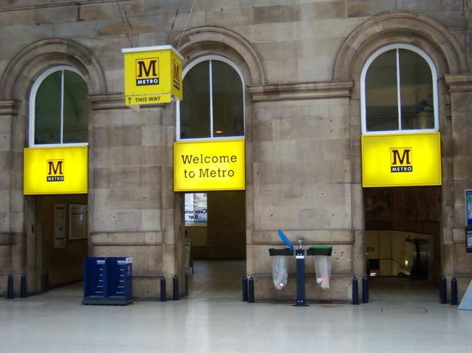 | Keywords: Central Station Metro station, 7 October 2013 (3).JPG Central Station Metro station Newcastle upon Tyne This is the entrance to the Metro station from the mainline station concourse It forms part of the Neville Street building Inside is an escalator and stairs on the right and a lift on the left which provide access to the underground ticket hall which extends north underneath the taxi road infront of the station building own 2013-10-07 Ultra7 Central Station Metro station | ||||