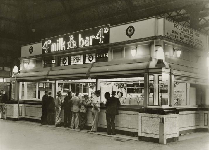 | Keywords: archives state records nsw staterecordsnsw newsouthwales blackandwhite central railway station centralrailwaystation people women monochrome black and white Central Railway Station, Sydney - exterior of milk bar Dated: 09/04/1946 Digital ID: 17420_a014_a014000088 Rights: www.records.nsw.gov.au/about-us/rights-and-permissions We'd love to hear from you if you use our photos. Many other photos in our collection are available to view and browse on our website using Photo Investigator. Central Railway Station, Sydney - exterior of milk bar Dated: 09/04/1946 Digital ID: 17420_a014_a014000088 Rights: www.records.nsw.gov.au/about-us/rights-and-permissions We'd love to hear from you if you use our photos. Many other photos in our collection are available to view and browse on our website using Photo Investigator. |