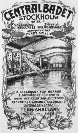 Keywords: Centralbadet affisch.jpg sv Affisch Centralbadet i Stockholm Stockholms stadsmuseum author 1904 PD-old Centralbadet
