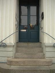 Keywords: century 1800 blue door glass panels stairs railings old
