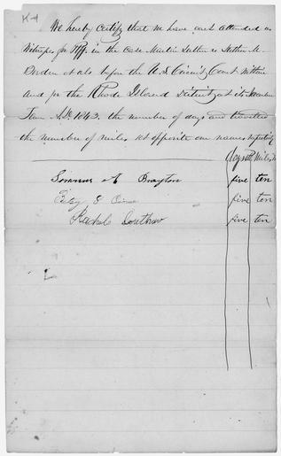Keywords: Certification of attendance of witnesses for plaintiffs in the case of Martin Luther v. Luther Borden, et. al. - NARA - 278282.tif Scope and content This document is from the file for the case of Martin Luther v Luther Borden This is a suit for trespass against a group of Rhode Island state militia who acting under martial law broke into Martin Luther's house in the middle of the night searched the premises and threatened its inhabitants Luther claimed that the legislation establishing martial law was void because the charter government which proclaimed martial law was not the legal government of Rhode Island The defendents claimed that the declaration of martial law was legal and that they were acting under the orders of their superior officers when they entered the house to search for Luther who was an important supporter of Thomas W Dorr who had organized a people's government The decision of the US Circuit Court in favor of the defendents was appealed to the US Supreme Court The US Supreme Court however feeling that the case was political in nature refused to rule on the issues and returned the case to the US Circuit Court This case was an important case in the historic events commonly known as the Dorr Thomas W Dorr Rebellion General notes 278282 Local identifier U S Circuit Court for the District of Rhode Island 1790 - 01/01/1912 NARA's Northeast Region Boston NRAAB 380 Trapelo Road Waltham MA 02452-6399 11/1843 - 11/1843 Record group Record Group 21 Records of District Courts of the United States 1685 - 2004 Record group ARC 350 Case Files compiled 11/1790 - 12/1911 Series ARC 278236 File unit Martin Luther v Luther Borden et al 10/06/1842 - 12/1848 File unit ARC 278271 Variant control numbers NAIL Control Number NRAB-21-CASECCRI-24LAW-K yes Other versions NARA-cooperation PD-USGov Luther v Borden |