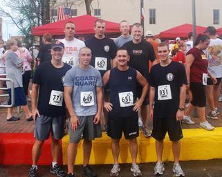 Keywords: CGC Dauntless crew members participate in Galveston run DVIDS1092859.jpg en HOUSTON - In this photo by the U S Coast Guard crewmembers from the Coast Guard Cutter Dauntless homeported in Galveston Texas participated in the Galveston Historical Foundation's Rebirth Run Saturday Sept 12 2009 The run was held to raise money to rehabilitate buildings destroyed during Hurricane Ike Approximately 950 registered runners participated in the run which was routed through various Galveston neighborhoods affected by Hurricane Ike The Dauntless crew won the team event and all eight crewmembers finished within the top 70 of all registered runners Dauntless crewmembers pictured above include top row from left to right Seaman Steven Scott Ensign Tommy Adams Seaman Jordan Houle and Cmdr Jim Andrews commanding officer of the Coast Guard Cutter Dauntless Bottom row left to right Chief Petty Officer Greg Klynman Seaman Elliott Felix Lt Cmdr Pat Culver executive officer of the Coast Guard Cutter Dauntless and Ensign Woody Shepherd Photo courtesy of David Canright Galveston Historical Foundation 2009-09-12 https //www dvidshub net/image/1092859 1092859 2013-12-12 02 24 HOUSTON TX US PD-USGov Hurricane Ike Images from DoD uploaded by Fæ |