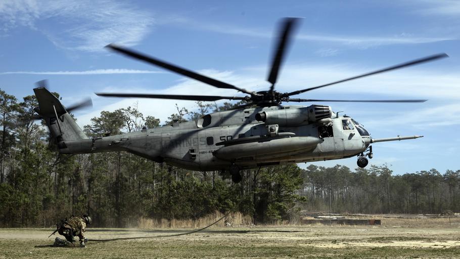 Keywords: Marine Corps CH-53E Super Army Stallion helicopter lands