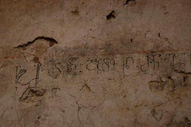 Keywords: Chachubeti Asomtavruli inscription.jpg en A Georgian asomtavruli inscription at the Chachubeti church http //www karavi ge/viewtopic php t 1582 postdays 0 postorder asc start 30 sid dd0bde210f728599610f48291e8ada24 www karavi ge unknown ; Photographed and posted by Makena High Middle Ages; posted on 2007 10 01 PD-Art Asomtavruli inscriptions Chachubeti church Georgian Inscriptions in Georgia |