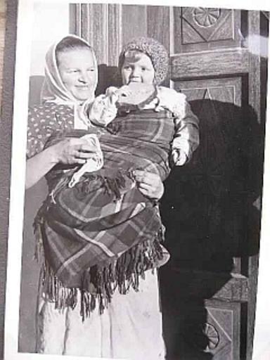 Keywords: Chacka.jpg pl kobieta z chustą T Wiśniewski www bagnowka com T Wiśniewski PD-Polish PD-Art Baby sling Black and white photographs of women Headscarves Black and white photographs of children of Poland Children eating Women of Poland