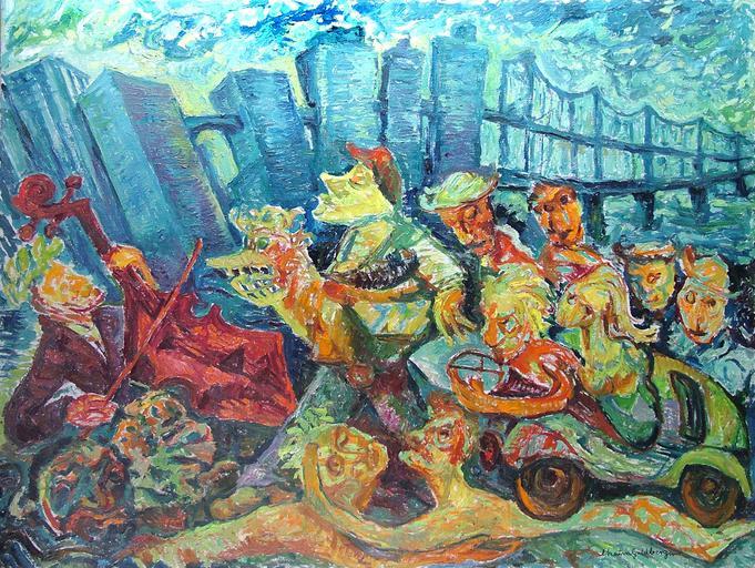 | Keywords: Chaim Goldberg - Mad Drivers by the Bridge.jpg Mad Drivers by the Bridge oil painting on canvas http //en wikipedia org/wiki/File Mad_Drivers_by_the_Bridge 75 055 jpg 1975 Chaim Goldberg Chaim_Goldberg Art of the United States 1975 paintings |