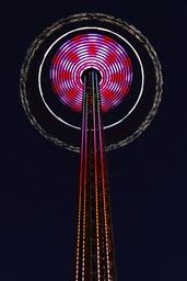 | Keywords: chain aviator tower high 80m fair hustle and bustle year market folk festival carnies fairground pleasure fun leisure fun activity colorful entertainment speed color fast sit chains view no fear of heights upward height turn night lights light attraction |
