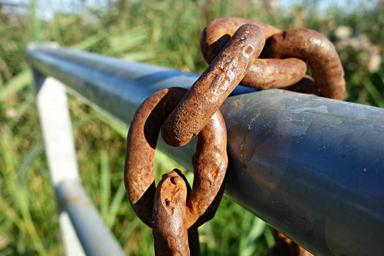 Keywords: chain link iron fastening secure gear rust rusty chain heavy fence
