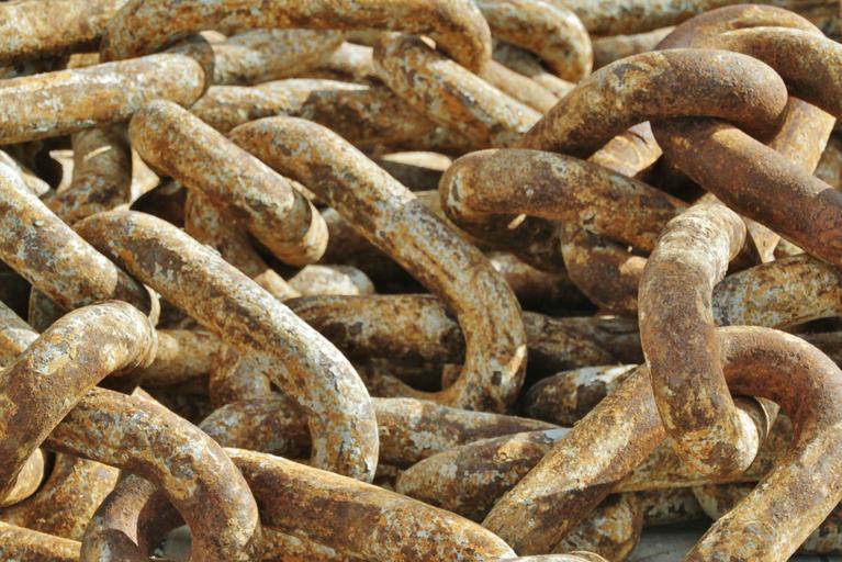 Keywords: chains chain links of the chain metal chain anchor chain connection old rusted metal iron chain link stainless rusty corrosion oxidation decay weathered structure confused maritime ship accessories shipping close up accessories still life