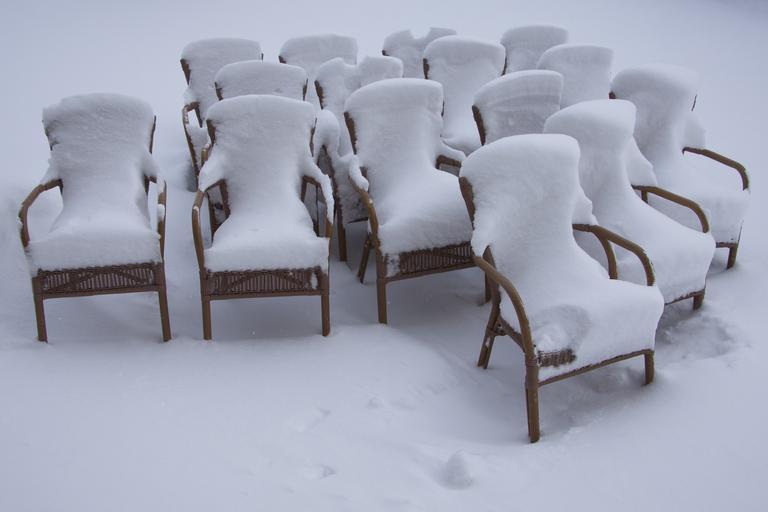 Keywords: chairs beer garden snowy winter snow snow pads new zealand snowfall frost winter blast ice