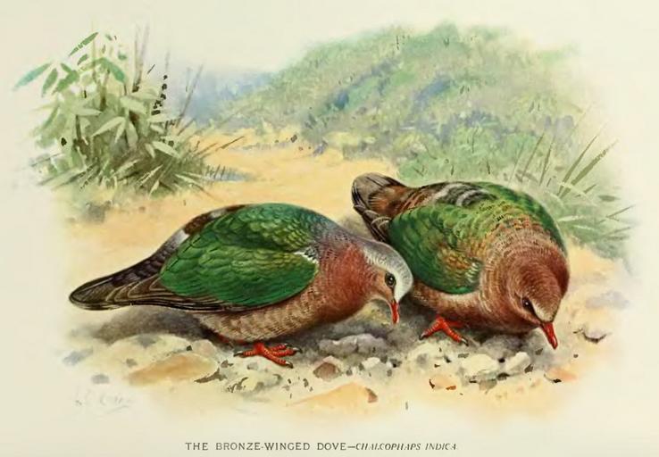Keywords: ChalcophapsIndica.jpg en Chalcophaps indica Indian pigeons and doves 1913 H Gronvold and E C Stuart Baker 1913 PD-Art Chalcophaps indica Indian Pigeons and Doves by E C Stuart Baker