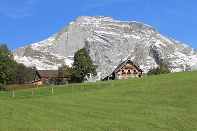 Keywords: chalet mountain switzerland alps landscape blue