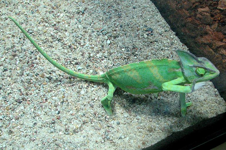 Keywords: chameleon close up exotic green lizard chamaeleo calyptratus camouflage stone block wildlife nature looking