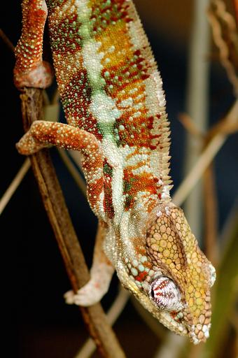 Keywords: chameleon lizard animal world animal nature reptile creature close camouflage zoo to adjust exotic disguised eye camouflage paint jungle