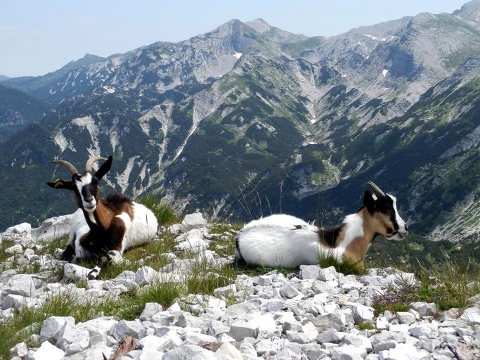 Keywords: chamois mountain goats nature wild rocky animals outdoors landscape alpine mammals wild goat farmland