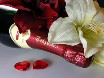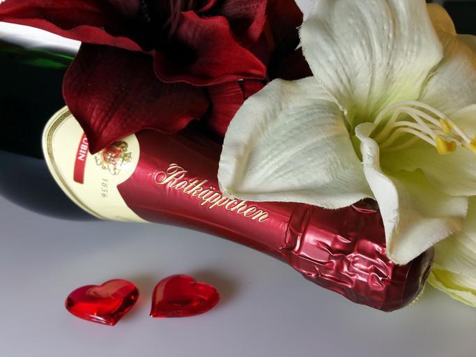 Keywords: champagne rotkäppchen heart romance flowers valentine's day love background bottle alcohol