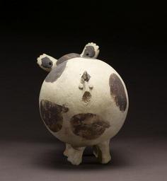 Keywords: Chancay - Llama Effigy - Walters 20092049 - Back.jpg The llama a native camelid of the Americas touched all aspects of Andean life The llama- the only native American beast of burden-was used primarily to transport goods from the coastal deserts to the highest mountain plains Well adapted to the extremes of the Andean environment including climate terrain and altitude the llama was at the heart of every Andean home The llama and its camelid cousins alpaca guanaco and vicuña provided the all-important hairs that were spun into fibers to weave warm garments of considerable strength and durability Such clothing was crucial for survival during cold Andean nights and in the altiplano highlands Llamas also provided body heat for shepherds and other laborers who could not return to a warm home every night Llama blood was an important ritual offering and its meat was occasionally consumed for protein although the high value of the living animal made these latter uses infrequent and of special significance During the Late Intermediate Period the Chancay Valley and adjacent Chillón Drainage developed an energetic corporate style of architecture and art Large amounts of ceramics were produced and distributed among the ruling elite as well as those of lesser status Among these are the distinctive mold-made and hand-modeled sculptures of humans both men and women and animals This engaging sculpture of a young llama captures the animal's natural inquisitiveness It cocks its head slightly to the side as if watching intently some unseen activity The artist divided the llama's face into two halves painting one side white and the other black following the Andean principle of duality and balance The artist also designated the animal's sex as male and embellished the body with black spots one of the natural coloration schemes of the animal Typical of the distinctive Chancay pottery style is the somewhat haphazard modeling and painting which enhance the piece's charm AD 1000-1470 Late Intermediate earthenware slip paint cm 21 11 40 39 16 accession number 2009 20 49 80204 Economos Works of Art date and mode of acquisition unknown John G Bourne 1990s by purchase Walters Art Museum Gift of John Bourne 2009 place of origin Central Coast Walters Art Museum license Pre-Columbian art in the Walters Art Museum Chancay pottery Llamas in art |