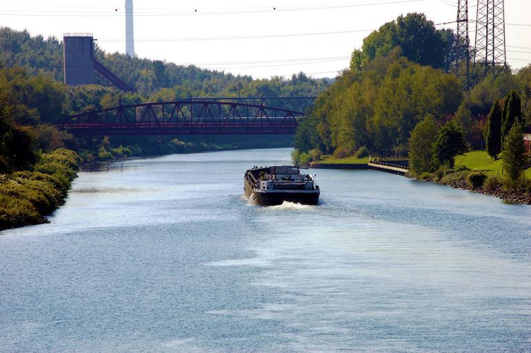Keywords: channel ship rhine herne canal bridge gelsenkirchen buga ruhr area industrial park inland waterway transport