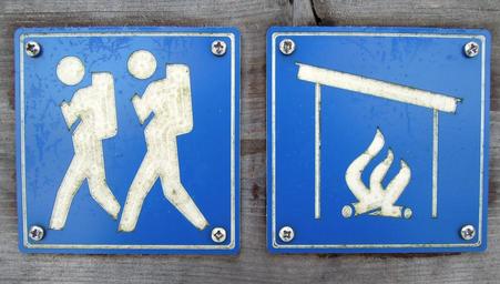 Keywords: character sign camp campfire site fire man walk hike camping campfire
