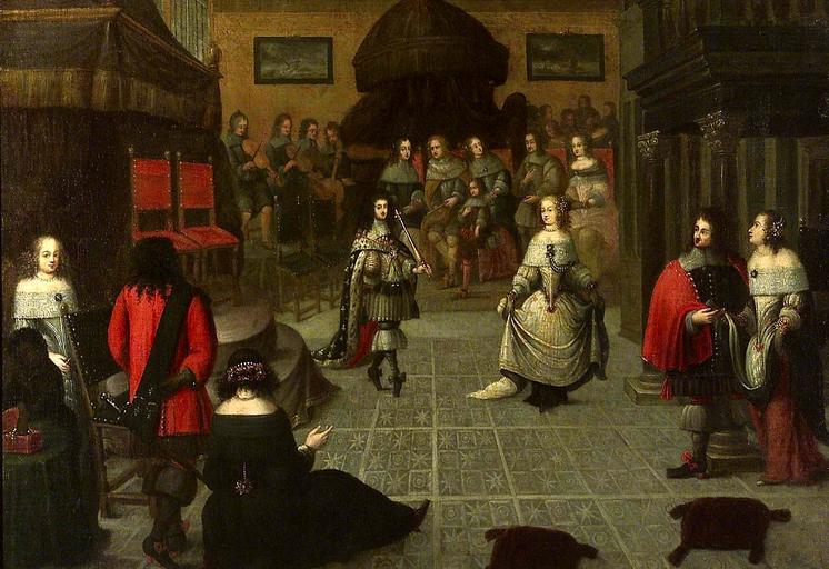 | Keywords: Charles II Dancing at The Hague, the Netherlands.jpg en Little is known about this painting or the artist It has traditionally been ascribed to Gonzales Coques and was believed to show Charles II dancing at The Hague in 1660 perhaps with his niece Elizabeth van de Paltz They were at a reception at the Stadtholder's court on the occasion of his restoration as King of England Against this it must be said that the resemblance of the principal figure to Charles II is not convincing and as he wears both a cloak emblazoned with fleur-de-lys and the collar and emblem of the Order of the Golden Fleece it may equally be a portrait of Louis XIV dancing in a Dutch interior setting on some other occasion There are several other interpretations of this subject documenting Charles II's last days of exile before his departure for England The painting is in the style of 17th-century Dutch work with a typically enclosed interior Materials oil on canvas Measurements painting 838 x 1194 mm 1660 Institution National Maritime Museum http //collections rmg co uk/collections/objects/11773 html Weblink Creator Gonzales Coques other versions Custom license marker 2016 04 06 PD-old-auto PD-1923 1684 Charles II of England Elizabeth Stuart Queen of Bohemia Gonzales Coques Paintings in the National Maritime Museum London The Hague in the 1660s |