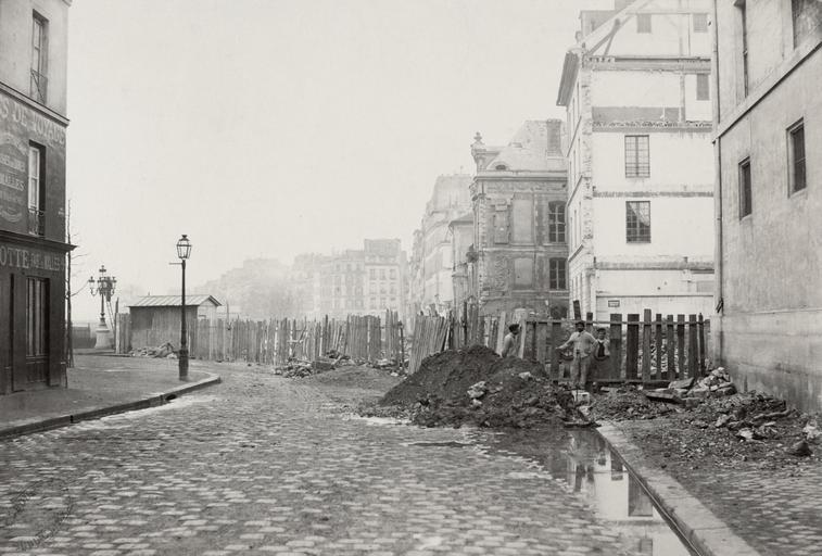 MAKE A MEME View Large Image Charles Marville, Amorce du Boulevard Henri IV et de la rue Sully, ca. 1853–70.jpg Photograph en Looking along the beginning of Boulevard Henri IV workmen standing in front of delapidated picket fence builders rubble on edge of cobbled ...