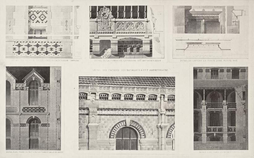 | Keywords: Charles Marville, Collége Chaptal, ca. 1853–70 III.jpg Six photographs compiled and rephotographed as one image overall title printed above and each individual image with title beneath each image showing a detail of the architecture including bichromic brickwork and decorative stone work depicted people depicted place Lycée Chaptal circa 1853 “70 4 photographic prints mounted on cardboard albumen silver 25 8 x 38 4 cm and smaller Institution State Library of Victoria object history exhibition history credit line Gift; Government of France; 1880 Photographer not stated but possibly Charles Marville Titles inscribed in black ink on folio pages beneath images Undated dates assigned from Haussman's renovation of Paris accession number H88 19/2/47a SLVIC-digitalimage 132711 H88 19/2/47a PD-100 Historical images of Lycée Chaptal Paris Charles Marville - Photographic views of Paris Images of Paris from the State Library of Victoria |