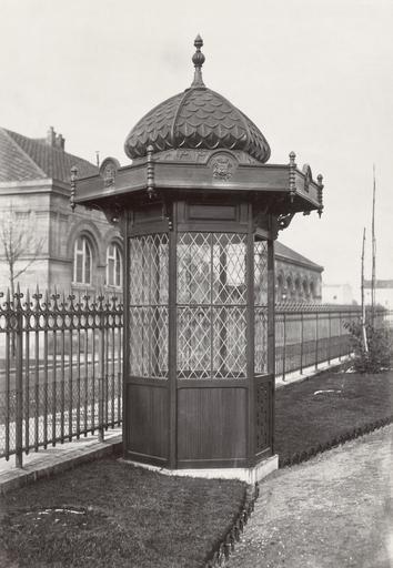 Keywords: Charles Marville, Loge kiosque de Gardien de Square Montrouge, ca. 1865.jpg Photograph en Guard house for the Park's guard with latticed windows and cupola on roof situated on grass at edge of garden path railing fence behind and building on other side of road in background depicted people depicted place Square Ferdinand-Brunot Paris France ~ 1865 photographic print mounted on cardboard albumen silver 35 5 x 25 7 cm Institution State Library of Victoria accession number H2011 126/11 SLVIC-digitalimage 112742 H2011 126/11 Title on contents page Catégorie F No 11 Loge kiosque de Gardien de Square Montrouge object history exhibition history credit line Gift; Government of France; 1881 Photographer's blind stamp below image Title printed on slip of paper pasted to album page Not dated but circa 1865 Information field In collection Ville de Paris Édicules établis sur la voie publique et dans les promenades PD-100 Square Ferdinand-Brunot 1865 Sentry boxes in Paris 1865 ca Édicules établis sur la voie publique et dans les promenades Images of Paris from the State Library of Victoria Historical images of Paris 14e arrondissement 1865 |