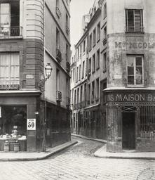 Keywords: Charles Marville, Rue des Lavandières, de la Place Maubert, ca. 1853–70.jpg Photograph en Looking from cobbled street towards entrance to a narrow lane zig zagging behind building street names on plaques on corner of buildings street light on bracket on corner building on left building on left with groceries on display building on right a wine shop with bars on window Buildings in narrow street with door opening onto narrow pathway depicted people depicted place circa 1853 “70 photographic print mounted on cardboard albumen silver 31 3 x 27 cm Institution State Library of Victoria object history exhibition history credit line Gift; Government of France; 1880 Photographer unknown but probably Charles Marville Undated dates assigned from time of Haussman's renovation of Paris Title hand inscribed on label adhered to portfolio page beneath image accession number H88 19/46 SLVIC-digitalimage 116527 H88 19/46 Information field In collection Photographic views of Paris PD-100 Charles Marville - Photographic views of Paris Images of Paris from the State Library of Victoria Former streets of Paris Rue Galande Paris Place Maubert Paris Historical images of Paris 8e arrondissement |