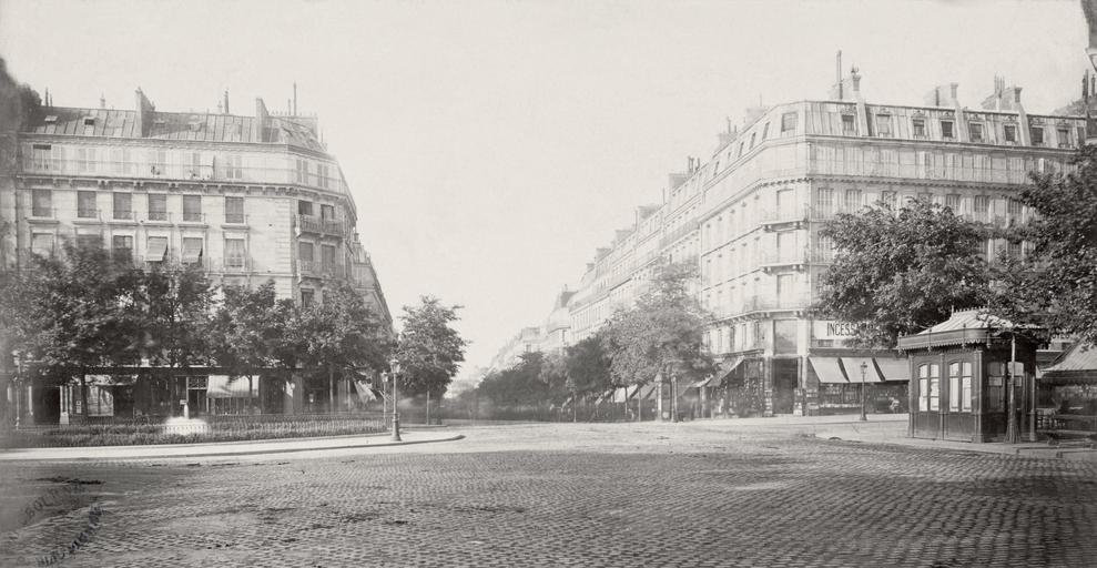 | Keywords: Charles Marville, Rue du Quatre Septembre, ca. 1853–70.jpg Photograph en Looking across wide cobbled intersection showing small fountain enclosed by grill fence on left; building on right corner possibly a bookshop a kiosk on path on right depicted people depicted place Rue du Quatre-Septembre Paris France circa 1853 “70 photographic print mounted on cardboard albumen silver 18 7 x 36 cm Institution State Library of Victoria accession number H88 19/76a SLVIC-digitalimage 122730 H88 19/76a object history exhibition history credit line Gift; Government of France; 1880 Photographer unknown but probably Charles Marville Undated dates assigned from time of Haussman's renovation of Paris Title hand inscribed on label adhered to portfolio page beneath image Information field In collection Photographic views of Paris PD-100 Rue du Quatre-Septembre Paris Charles Marville - Photographic views of Paris Images of Paris from the State Library of Victoria |
