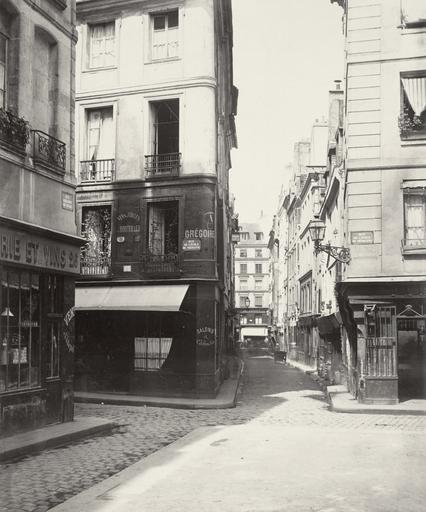 Keywords: Charles Marville, Rue Grégoire de Tours, de la rue de l'Ecole de Médecine, ca. 1853–70.jpg Looking from intersection of streets down cobbled laneway doorways opening onto narrow path Two plaques on corner buildings reading Rue de l'Ecole de Médecine Wine shop on right corner of intersecting street has plaque on wall Rue Grégoire de Tours depicted people depicted place circa 1853 “70 photographic print mounted on cardboard albumen silver 32 4 x 27 cm Institution State Library of Victoria object history exhibition history credit line Gift; Government of France; 1880 Photographer unknown but probably Charles Marville Undated dates assigned from time of Haussman's renovation of Paris Title hand inscribed on label adhered to portfolio page beneath image accession number H88 19/65 SLVIC-digitalimage 122769 H88 19/65 Information field In collection Photographic views of Paris PD-100 Charles Marville - Photographic views of Paris Images of Paris from the State Library of Victoria Rue Grégoire-de-Tours Paris Rue de l'École-de-Médecine Paris |