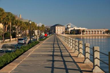 Keywords: charleston south carolina outside bay water sidewalk walkway houses homes mansions trees plants