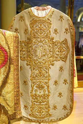 | View Original: | Chasuble presented to Archbishop Patrick W. Riordan on his silver jubilee, 1908, silk and gold thread, view 2 - Saint Ignatius Church, San Francisco, CA - DSC02620.JPG (3648x5472) | |||