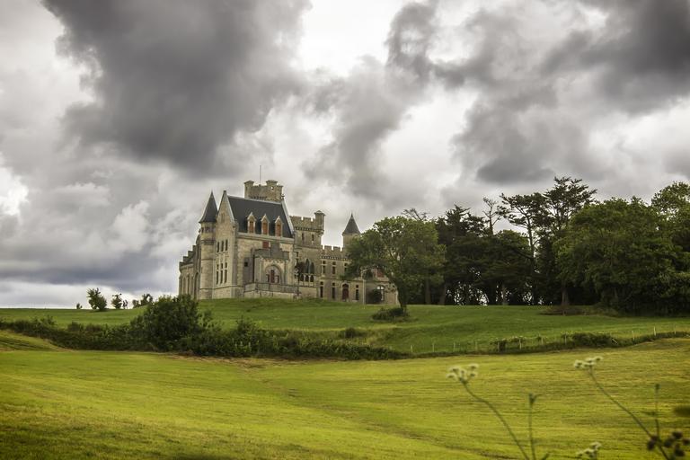 Keywords: château france orage nuages outdoor landscape field cloud sky plant grass Le Château d'Abbadia à Hendaye. Le Château d'Abbadia à Hendaye.