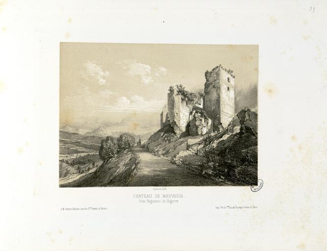 Keywords: Château de Mauvesin, près Bagnères de Bigorre - Fonds Ancely - B315556101 A LALANNE 2 031.jpg Fait partie d'un recueil de 29 lithographies en camaïeu Pl 4 et 16 dessinées par Séguin et lithographiées par Deroy Pl 17 lith par Deroy Titre lithographié Pendant la saison thermale se vend à Bagnères Barèges-Luchon Cauterets et Eaux-Bonnes Pl imprimées chez Frick frères à Paris Ancely René 1876 - 1966 Possesseur fre public domain domaine public B315556101_A_LALANNE_2_031 jpg image/jpeg 1 f de pl lithogr ; 26 5 cm oblong Dufour Jean-Marie Editeur Frick frères Editeur http //numerique bibliotheque toulouse fr/collect/general/index/assoc//ark /74899/B315556101_A_LALANNE_2_031 dir/B315556101_A_LALANNE_2_031 jpg Bibliothèque municipale de Toulouse A-LALANNE 2-30 Creator Maxime Lalanne http //catalogues toulouse fr/web2/tramp2 exe/do_keyword_search/log_in setting_key BMT1 servers 1home query p001259 vignette http //numerique bibliotheque toulouse fr/collect/general/index/assoc//ark /74899/B315556101_A_LALANNE_2_031 dir/B315556101_A_LALANNE_2_031_thumb jpeg century 19 Château de Mauvesin près Bagnères de Bigorre B315556101_A_LALANNE_2_031 lithography - print Castles in art Men in art Children in art Mountains in art Roads in art Bagnères-de-Bigorre Maxime Lalanne Castles in Hautes-Pyrénées Ruins in Hautes-Pyrénées Château de Mauvezin Trees in art Ruins Towers in art |