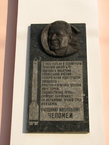 Keywords: Chelomej.JPG uk 1922-1926 в т удовій школі 10 навчався В Челомей own Tuma26 Commemorative plaques in Poltava Vladimir Chelomey Plaques to scientists 20 Pushkina Street Poltava