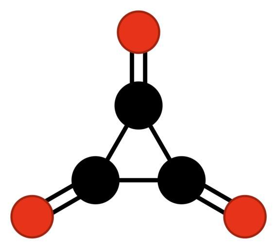 Keywords: Chemfm cyclopropanetrione.svg Molecular diagram of the almost hypothetical compound cyclopropanetrione For the oxocarbon Wikipedia article Own 2009-07-14 Jorge Stolfi Carbon oxides