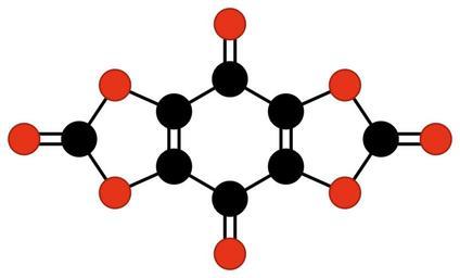 Keywords: Chemfm tetrahydroxy 1 4 benzoquinone biscarbonate.svg Molecular diagram of tetrahydroxy-1 4-benzoquinone biscarbonate For the oxocarbon Wikipedia article Own 2009-07-14 Jorge Stolfi Carbon oxides Quinones Organocarbonates
