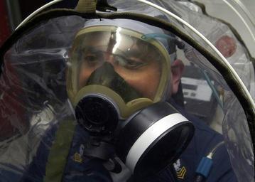 | Keywords: Chemical, Biological and Radiological equipment test DVIDS98877.jpg  en Petty Officer 1st Class Jorge Seda aviation maintenance administrationman assigned to the Aircraft Intermediate Maintenance Department tests a gas mask during a Chemical Biological and Radiological equipment test aboard Nimitz-class aircraft carrier USS Theodore Roosevelt Theodore Roosevelt is conducting carrier qualifications off the coast of Virginia 2008-03-02 Petty Officer 3rd Class John Suits https //www dvidshub net/image/98877 080302-N-+++++-035 2008-07-01 01 10 USNORTHCOM AT SEA PD-USGov-Military-Navy MCU-2/P Protective Mask Images from DoD uploaded by Fæ |