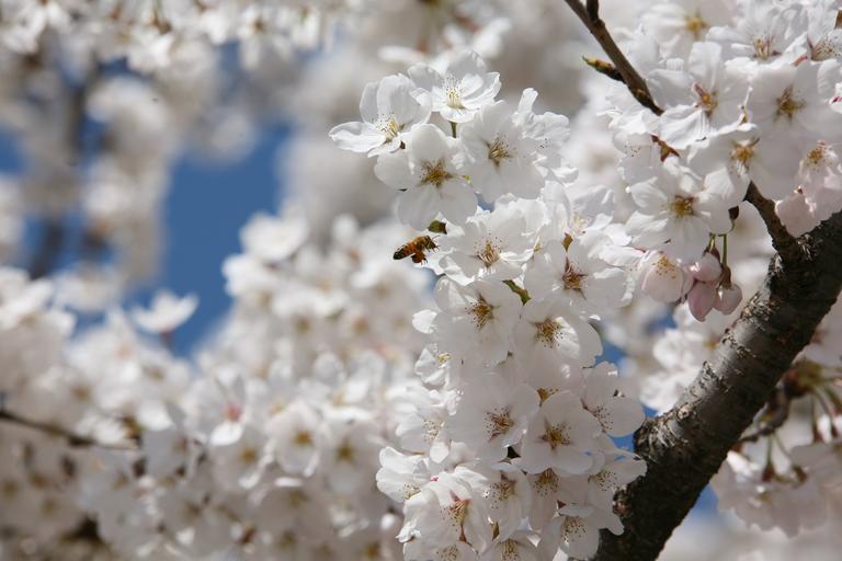 Keywords: cherry blossom april spring flowers nature plants spring flowers bee wood flower tree white flower pink flower blossom