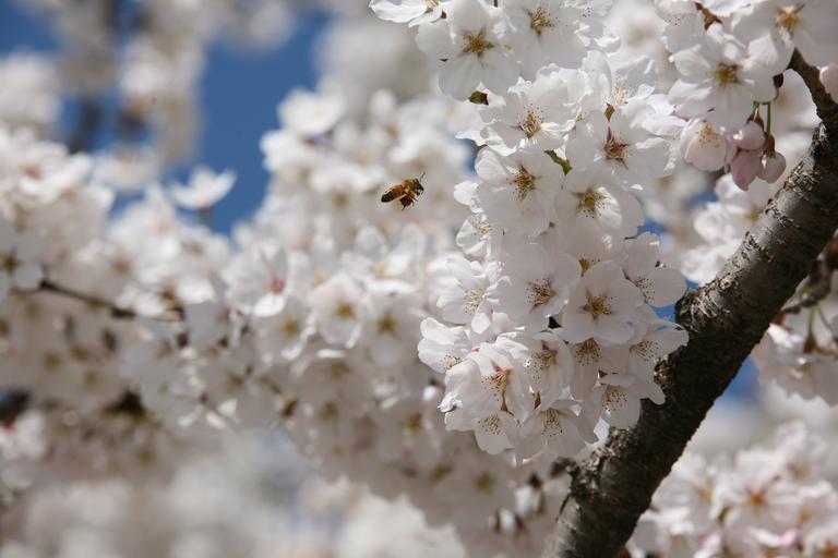 Keywords: cherry blossom april spring flowers nature plants spring flowers bee wood flower tree white flower pink flower blossom insects