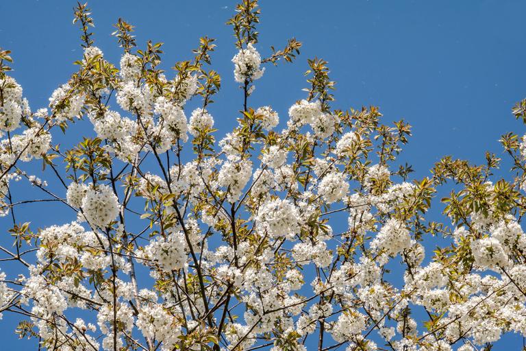 Keywords: cherry blossom cherry flowers white spring sky blue