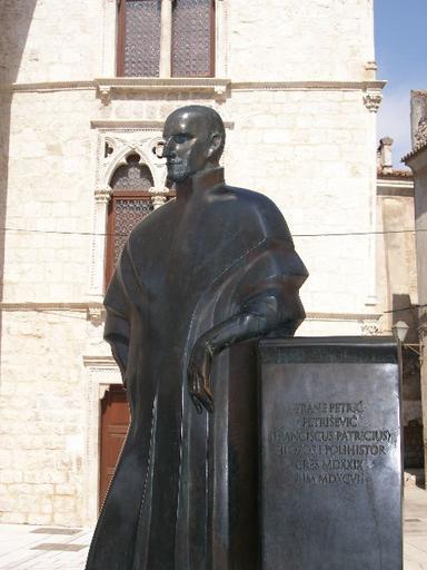 Keywords: Cherso Petrisevic.jpg Statue of Franjo Petris Franciscus Patricius in Cres island of Cherso Own 2006-08 Alexandre Albore Ruthven Public domain Ruthven Cres Statues in Primorje-Gorski Kotar County Frane Petrić Marija Ujević-Galetović