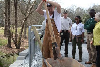 Keywords: outdoor Together with the South Fork Conservancy and the Greening Youth Foundation we're rolling out our Animal Olympics signs in English and Spanish at the Cheshire Farm Trail in Atlanta, Georgia. This is part of the South Fork Urban Wildlife Refuge Partnership. Here the group is doing their best Great Blue Heron yoga pose. Photo credit: Katherine Taylor, USFWS Together with the South Fork Conservancy and the Greening Youth Foundation we're rolling out our Animal Olympics signs in English and Spanish at the Cheshire Farm Trail in Atlanta, Georgia. This is part of the South Fork Urban Wildlife Refuge Partnership. Here the group is doing their best Great Blue Heron yoga pose. Photo credit: Katherine Taylor, USFWS |