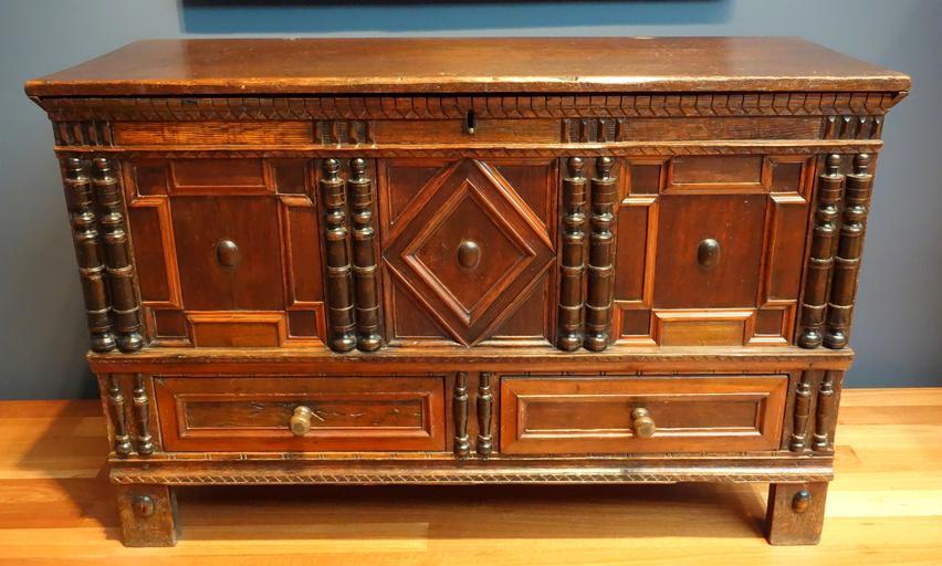 Keywords: Chest with drawers, maker unknown, Marshfield, Massachusetts, c. 1670-1695, oak, white pine, cedar, maple - De Young Museum - DSC00972.JPG en Exhibit in the De Young Museum San Francisco California USA This artwork is in the public domain because the artist died more than 70 years ago Photography was permitted in the museum without restriction 2013-11-05 16 27 59 own Daderot other versions cc-zero Furniture in the De Young Museum Uploaded with UploadWizard Furniture from Massachusetts |