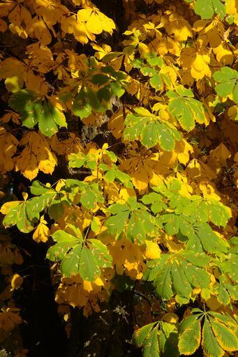 Keywords: chestnut leaves autumn fall color leaves tree chestnut chestnut tree green yellow canopy