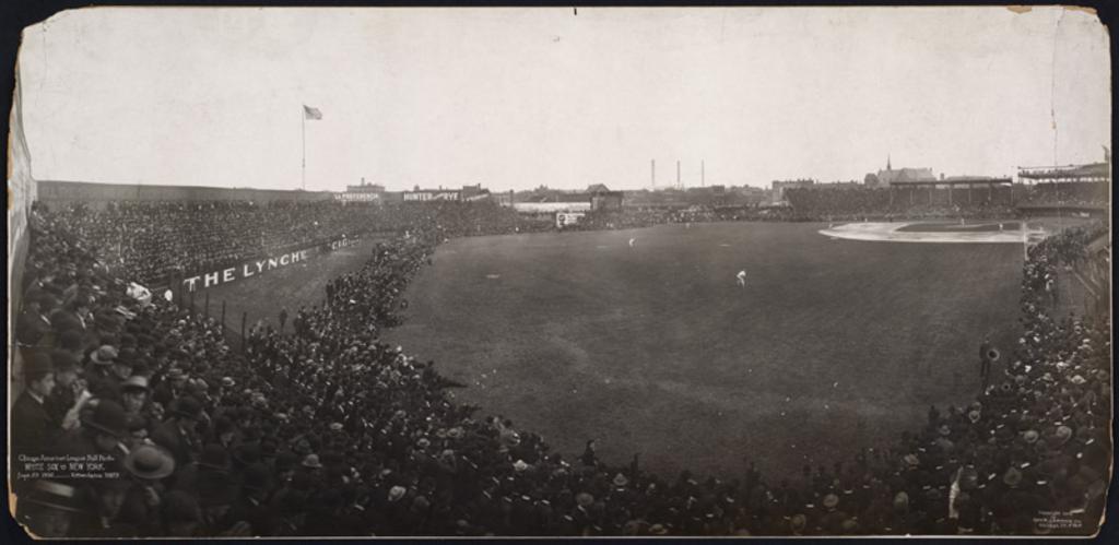 Keywords: Chicago American League Ballpark.jpg Panoramic photograph of a game between the Chicago White Sox and the New York Highlanders New York Highlanders in dark uniforms at bat White Sox in the field Photo no 8239 BPL Collection McGreevey Collection BPL Department Print Subject Baseball--History Athletic fields Sports spectators http //www flickr com/photos/24029425 N06/2350730560/ Chicago American League Ballpark 2007-02-22 17 44 http //www flickr com/people/24029425 N06 BPL cc-by-2 0 PD-old George Raymond Lawrence Baseball venues in Illinois 1906 in Major League Baseball Black and white photographs of Major League Baseball in the 1900s |