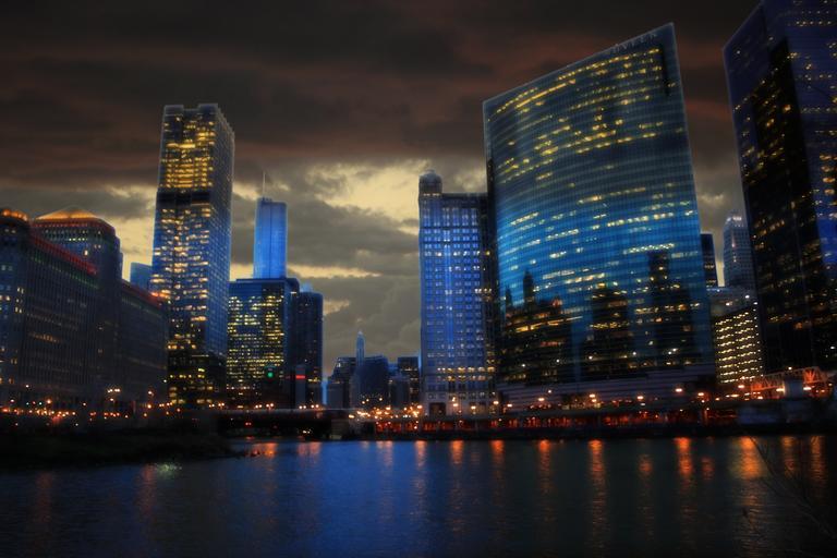 Keywords: chicago downtown dawn thunderstorm buildings skyscraper architecture clouds urban outside tourist magnet tourism scenic city ohio usa river water