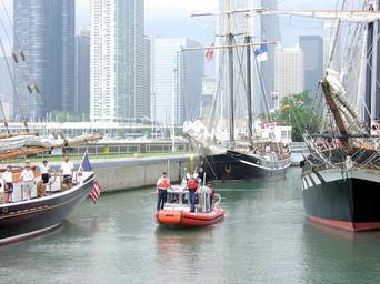 Keywords: CHICAGO'S TALL SHIP FESTIVAL DVIDS1074437.jpg en CHICAGO Ill Aug 4 2003 --A crew from Station Calumet Harbor transits the Chicago locks as tall ships wait to enter Lake Michigan from the Chicago River on the final day of Chicago's Tall Ship Festival The Coast Guard played an integral part in setting and enforcing security and safety zones during the event's Parade of Sail and around ships moored at various locations More than twenty tall ships participated in the event making it the largest tall ship festival on the Great Lakes USCG photo by PA2 Alan Haraf 2003-08-04 Chief Petty Officer Alan Haraf https //www dvidshub net/image/1074437 1074437 2013-12-11 16 32 CHICAGO IL US PD-USGov Lake Michigan Station Calumet Harbor Images from DoD uploaded by Fæ |